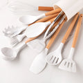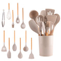 12pcs, Silicone Utensil Set, Khaki Kitchen Utensil Set With Wooden Handle, Safety Cooking Utensils Set, Non-Stick Kitchen Tools